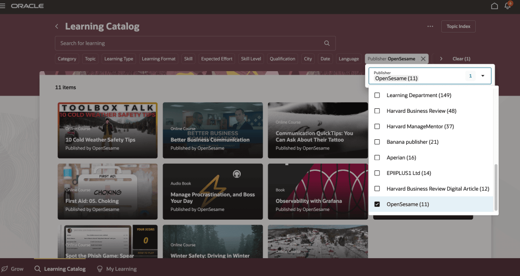 The final enhancements I want to highlight focus on third‑party learning content, specifically integrations with OpenSesame and Udemy. The OpenSesame integration makes it simple to bring high‑quality, third‑party content into Oracle Learning as self‑paced courses, with automated refreshes keeping the catalogue up to date and learner progress tracked seamlessly in a single transcript. Alongside this, the Udemy Business integration allows curated learning paths to be automatically imported and managed within Oracle Learning, giving learning teams clear visibility through xAPI tracking while providing learners with uninterrupted access to Udemy content. Together, these integrations reduce administration, improve catalogue visibility and broaden access to valuable learning resources real‑time tracking of learning outcomes.